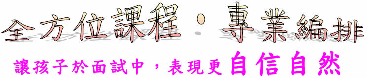 內容 全面而有系統,以多元智能、小組活動、故事創作、圖片表達、生活常識、問答比賽等形式進行,讓孩子於面試中發揮最佳之潛能,表現出衆。